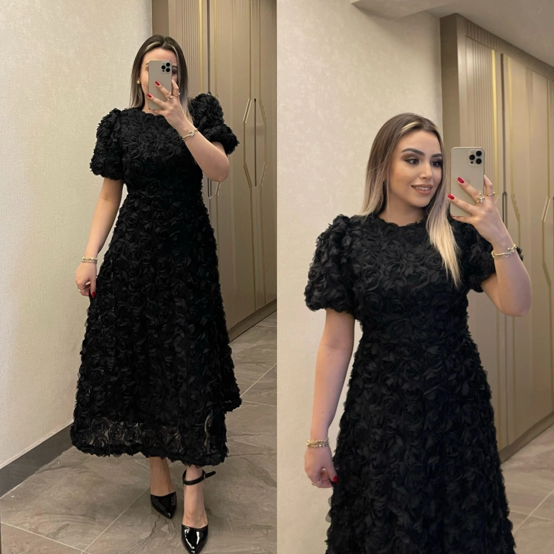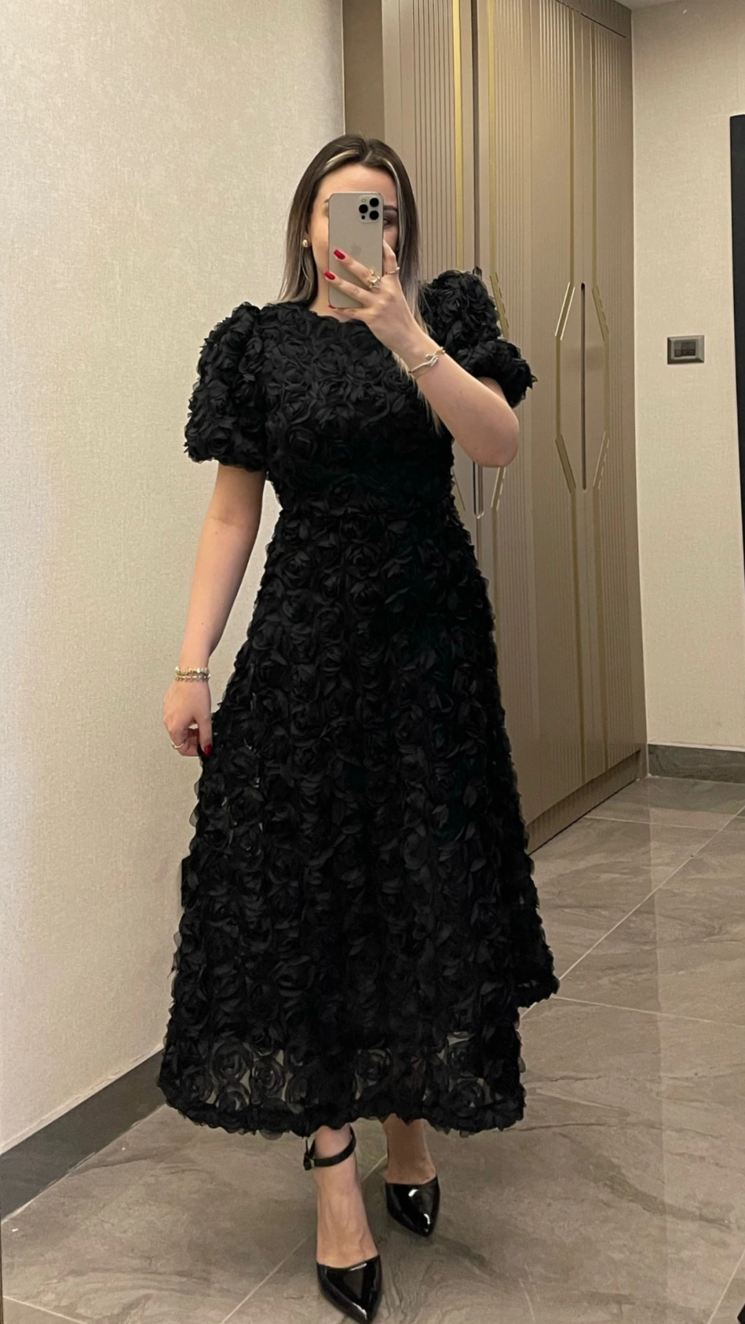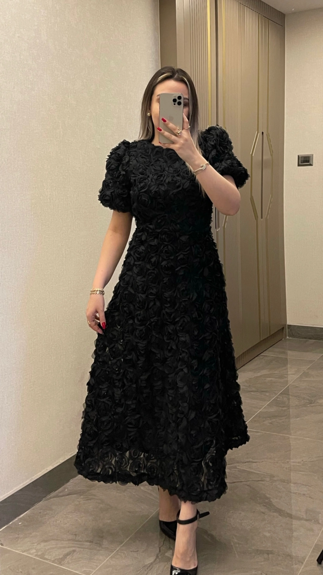 Haki Yeşil İçi Astarlı Müslin Elbise