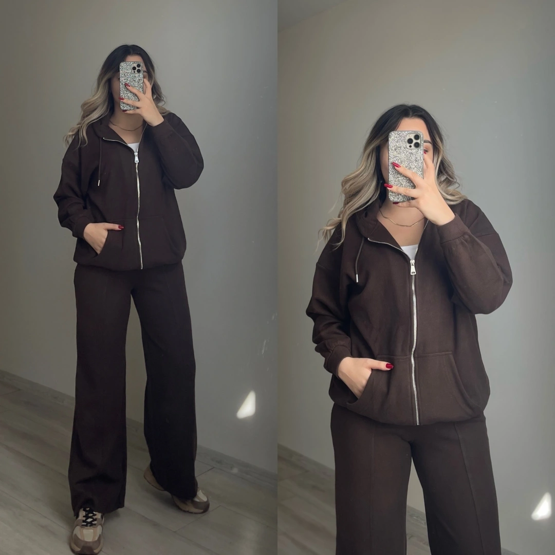 Orj Marka Modal Kumaş Yelekli Takım Kahverengi