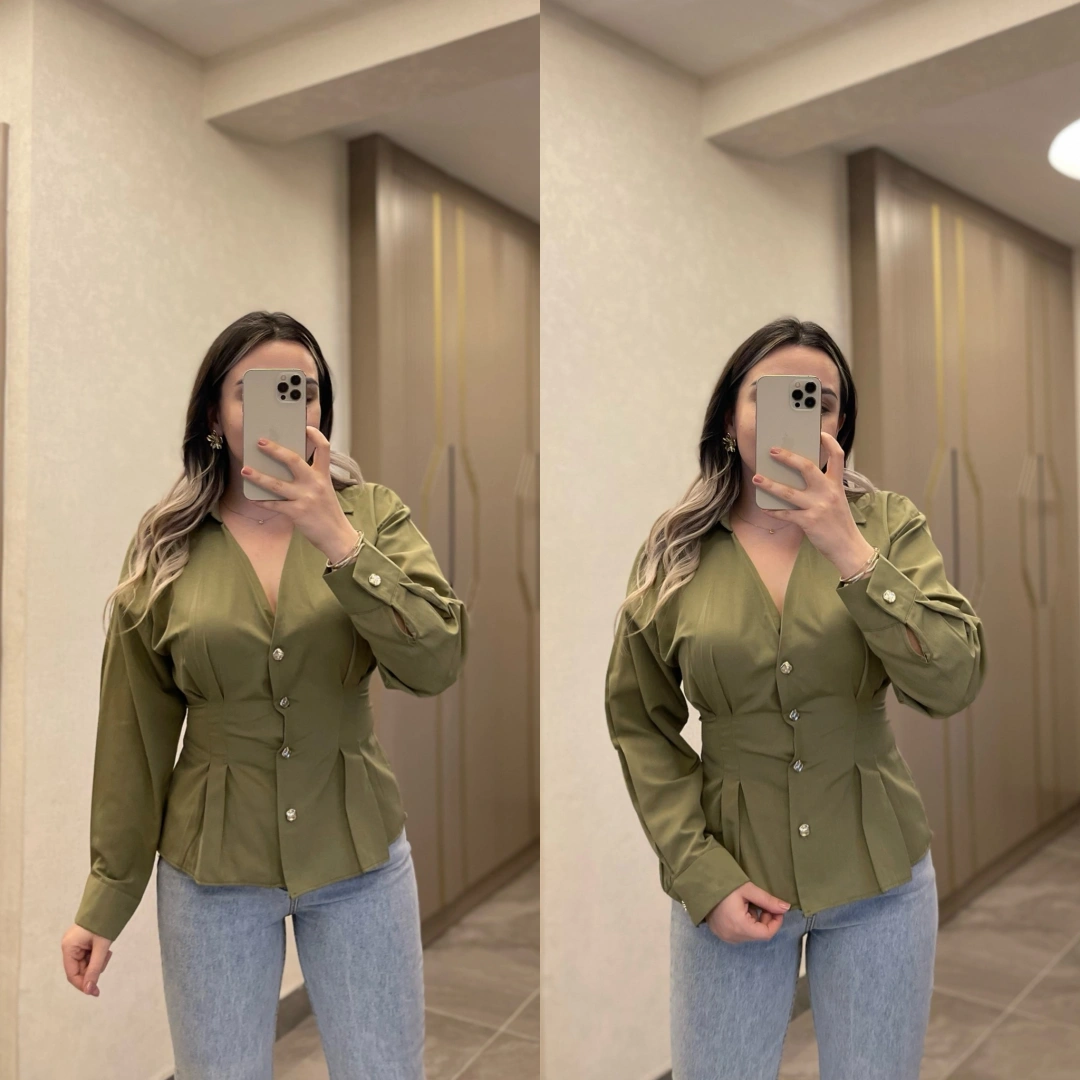Canlı yeşil tonu ve feminen kesimiyle dikkat çeken bu gömlek, stilinize enerjik bir dokunuş katar. Belden oturan formu sayesinde zarif bir siluet oluşturur.