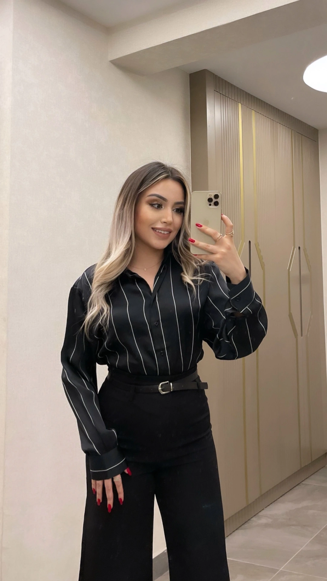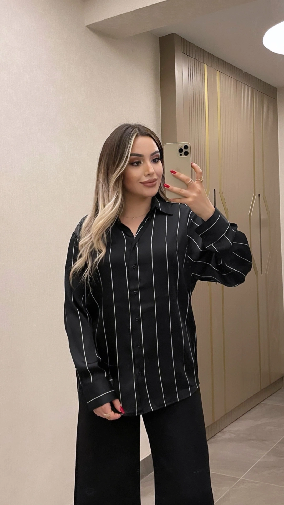 Çizgili Siyah Saten Gömlek