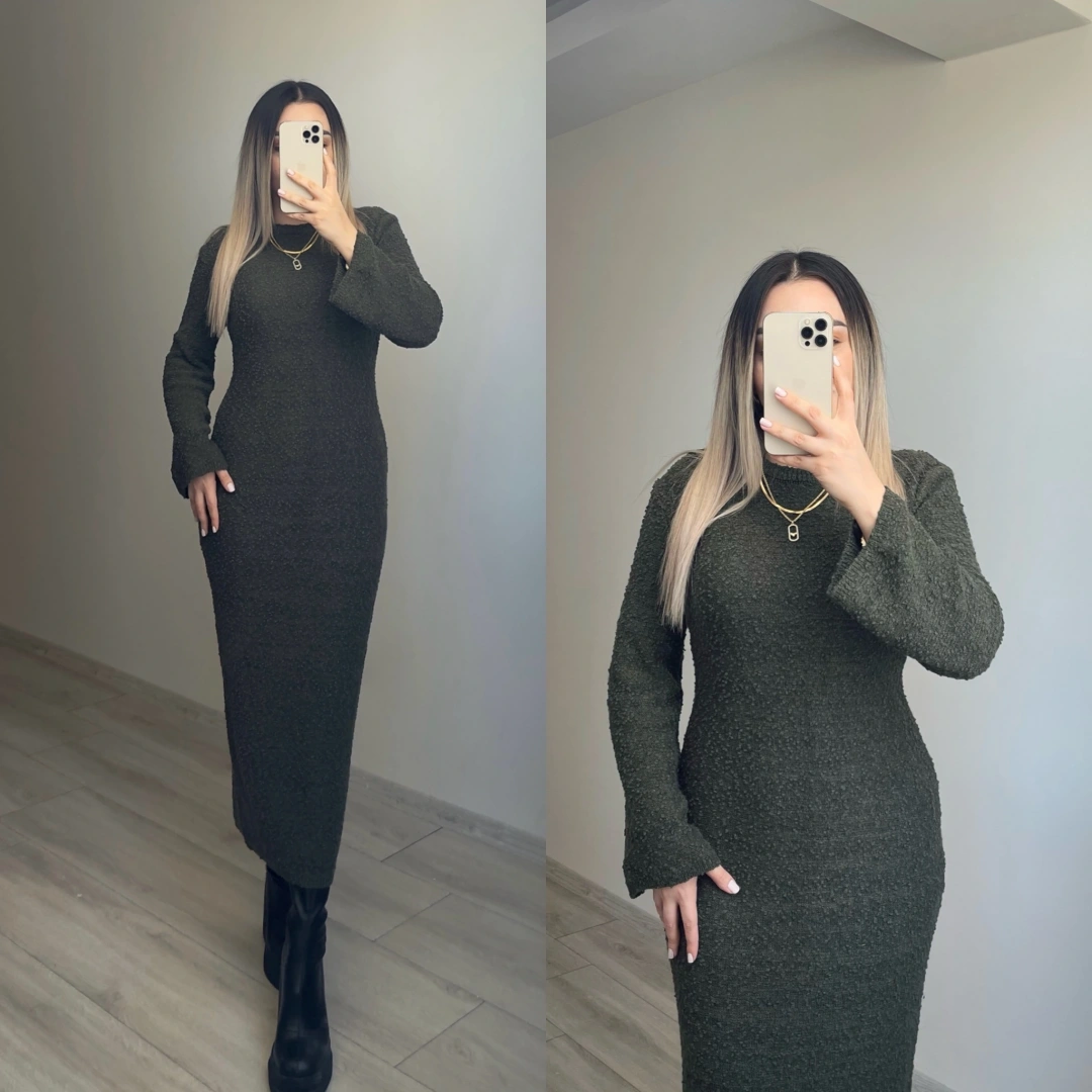 Haki Yeşil İçi Astarlı Müslin Elbise