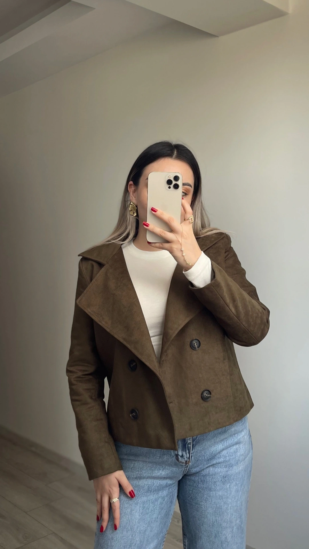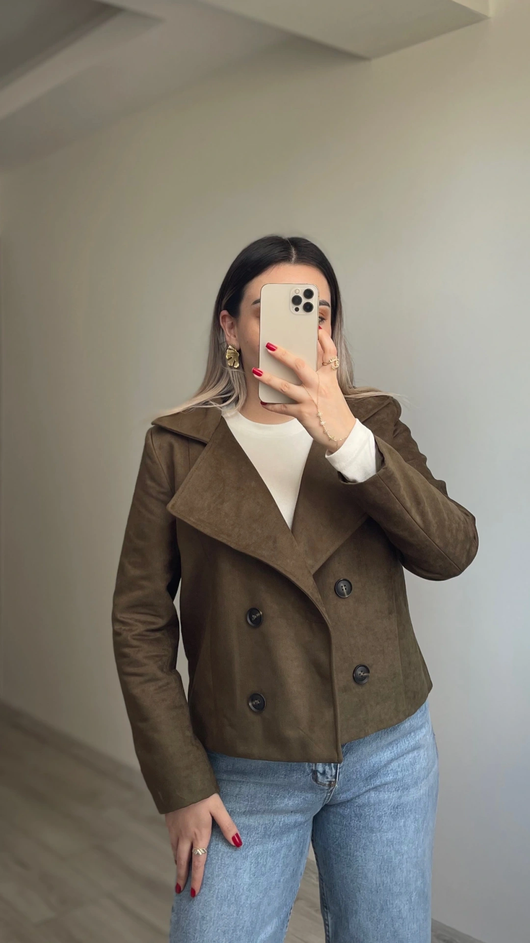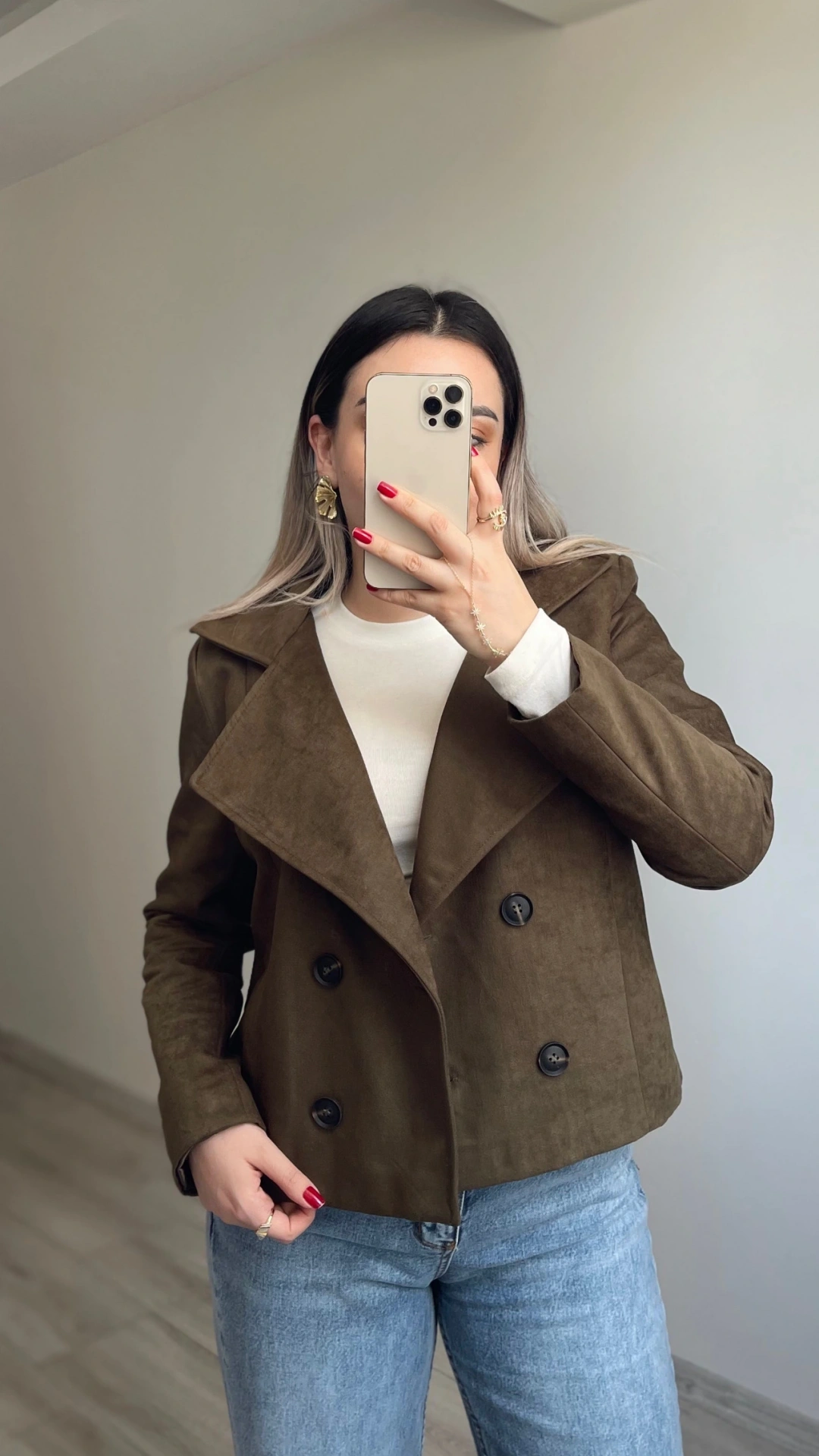 Haki Yeşil Kruvaze Süet Ceket