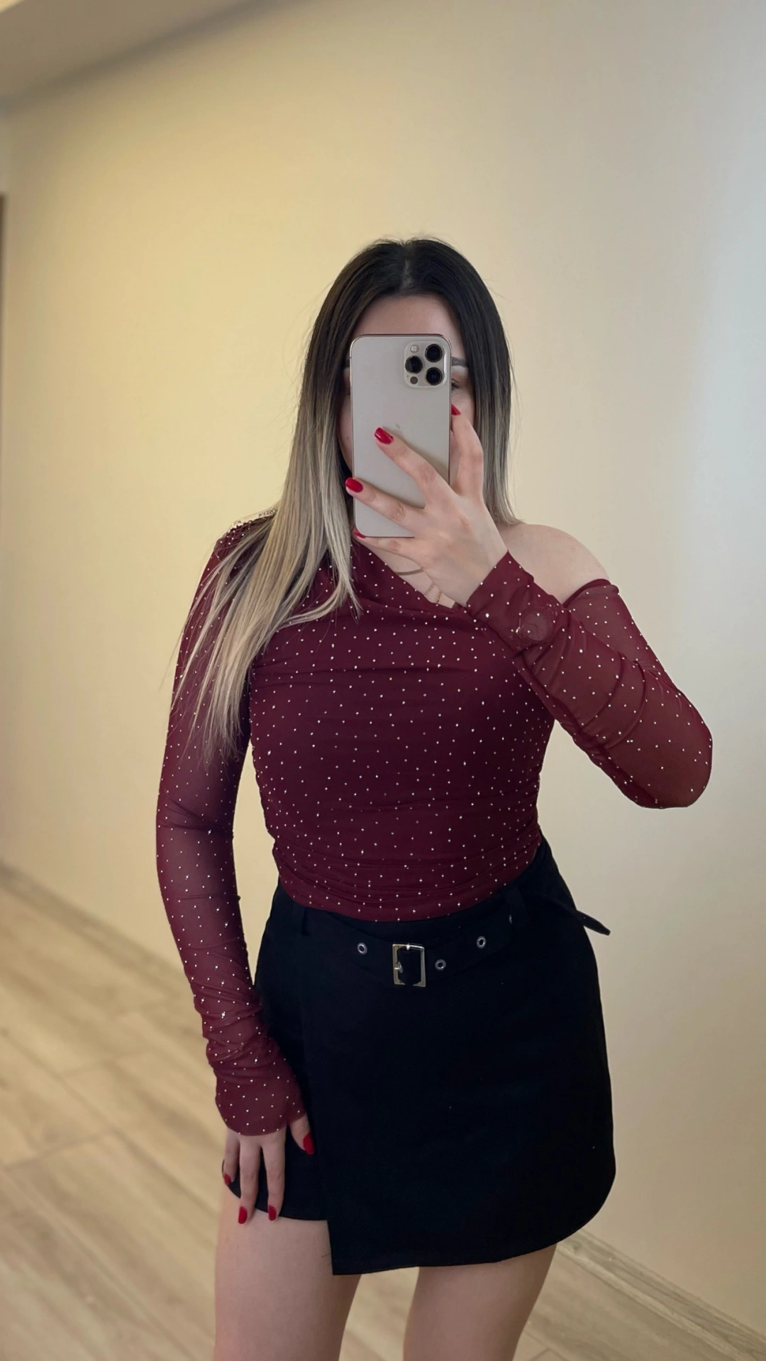 Işıltılı Bordo Bluz