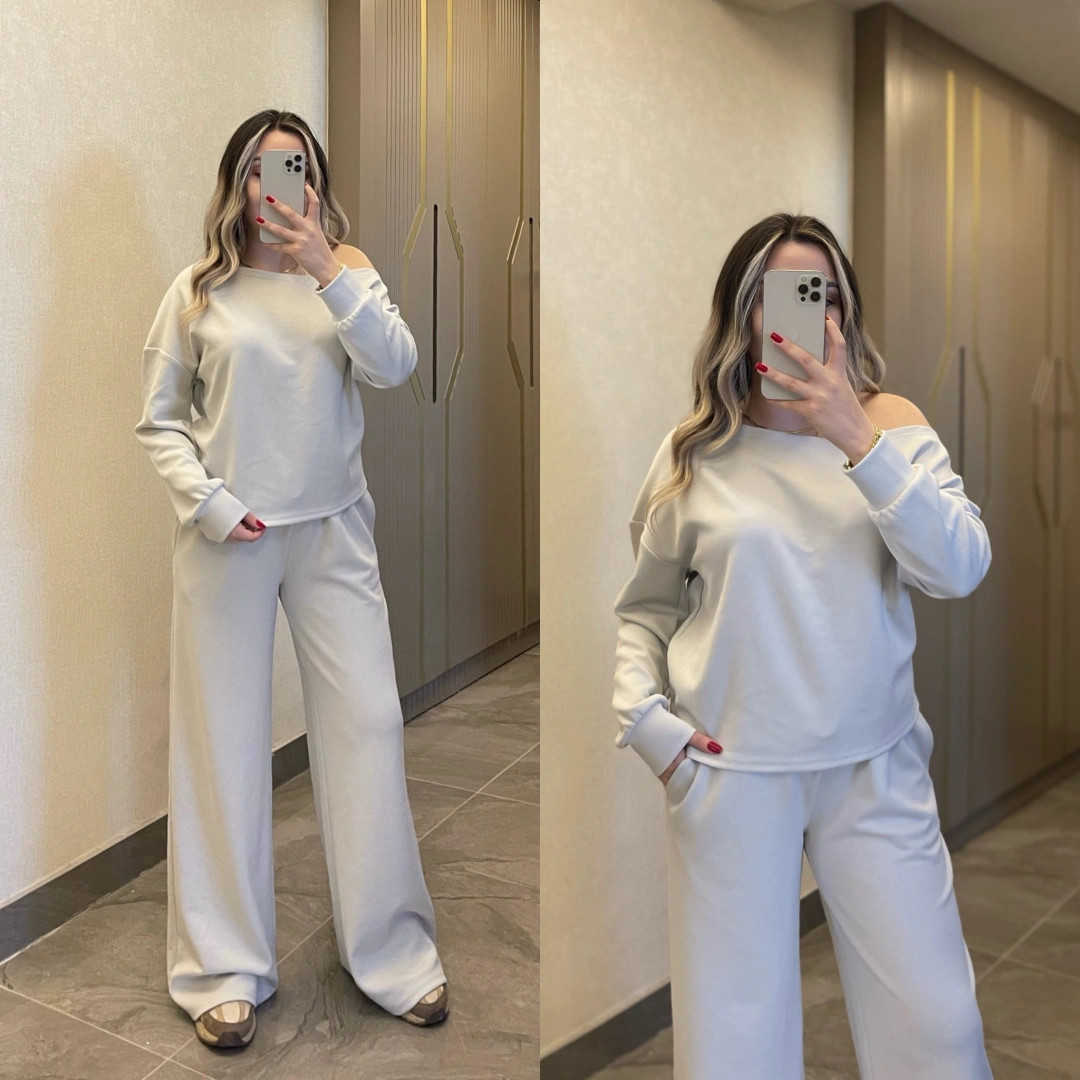 Kayık Yaka Modal Takım Gümüş