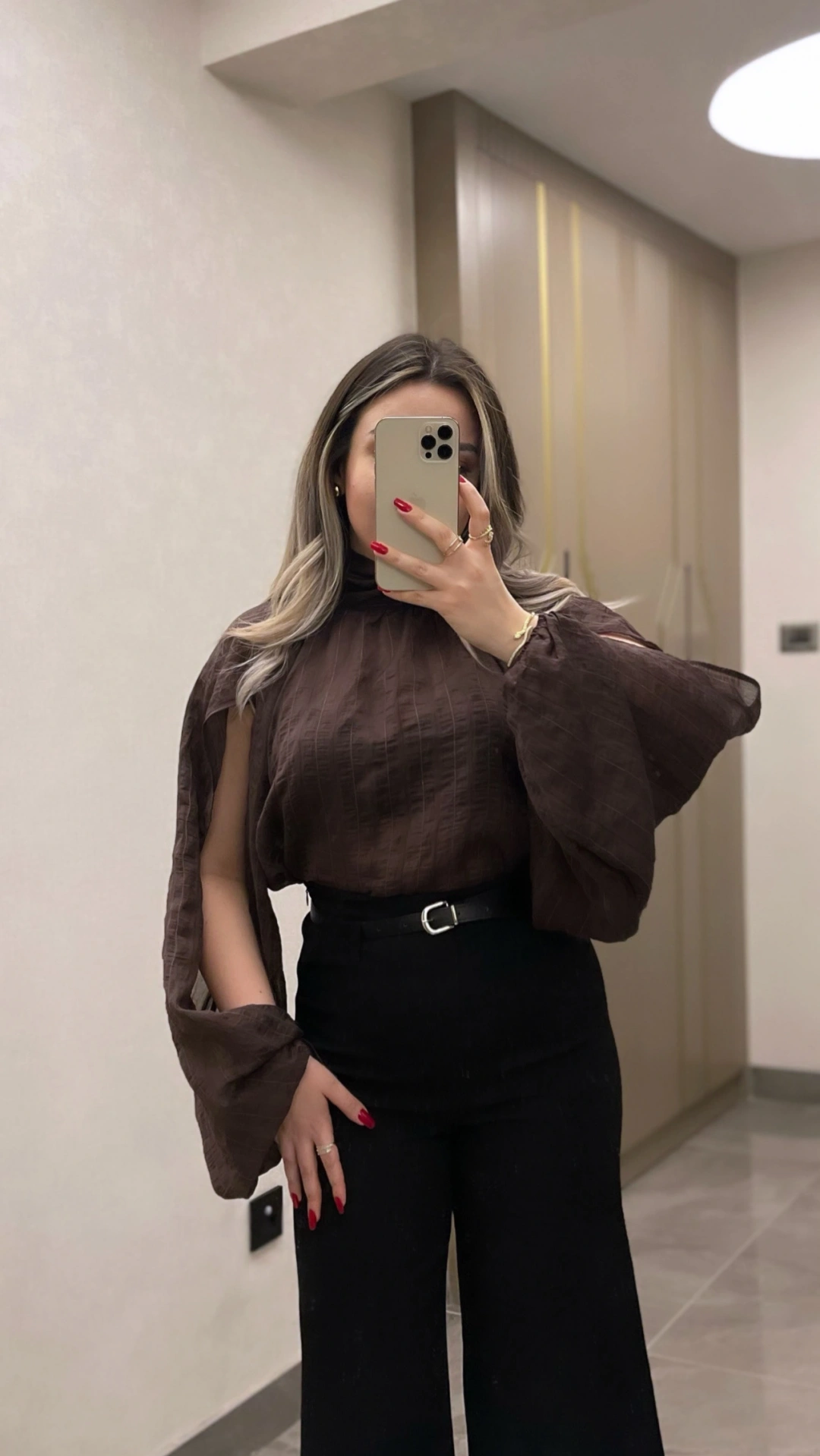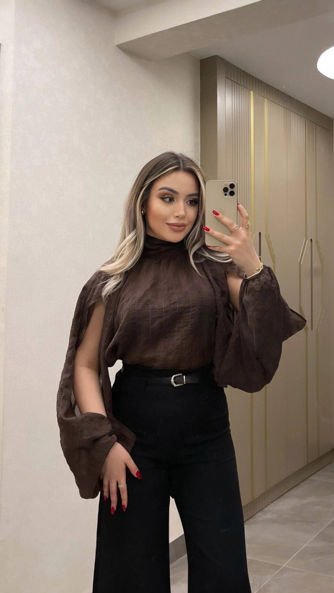 Kol Detaylı Acı Kahve Bluz