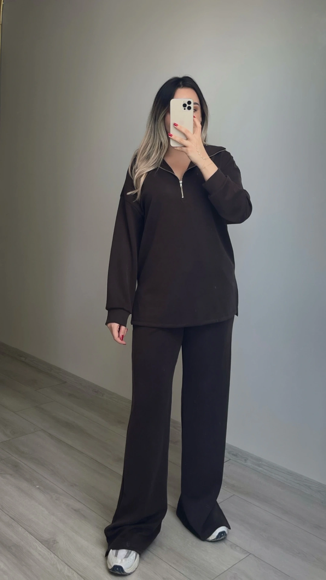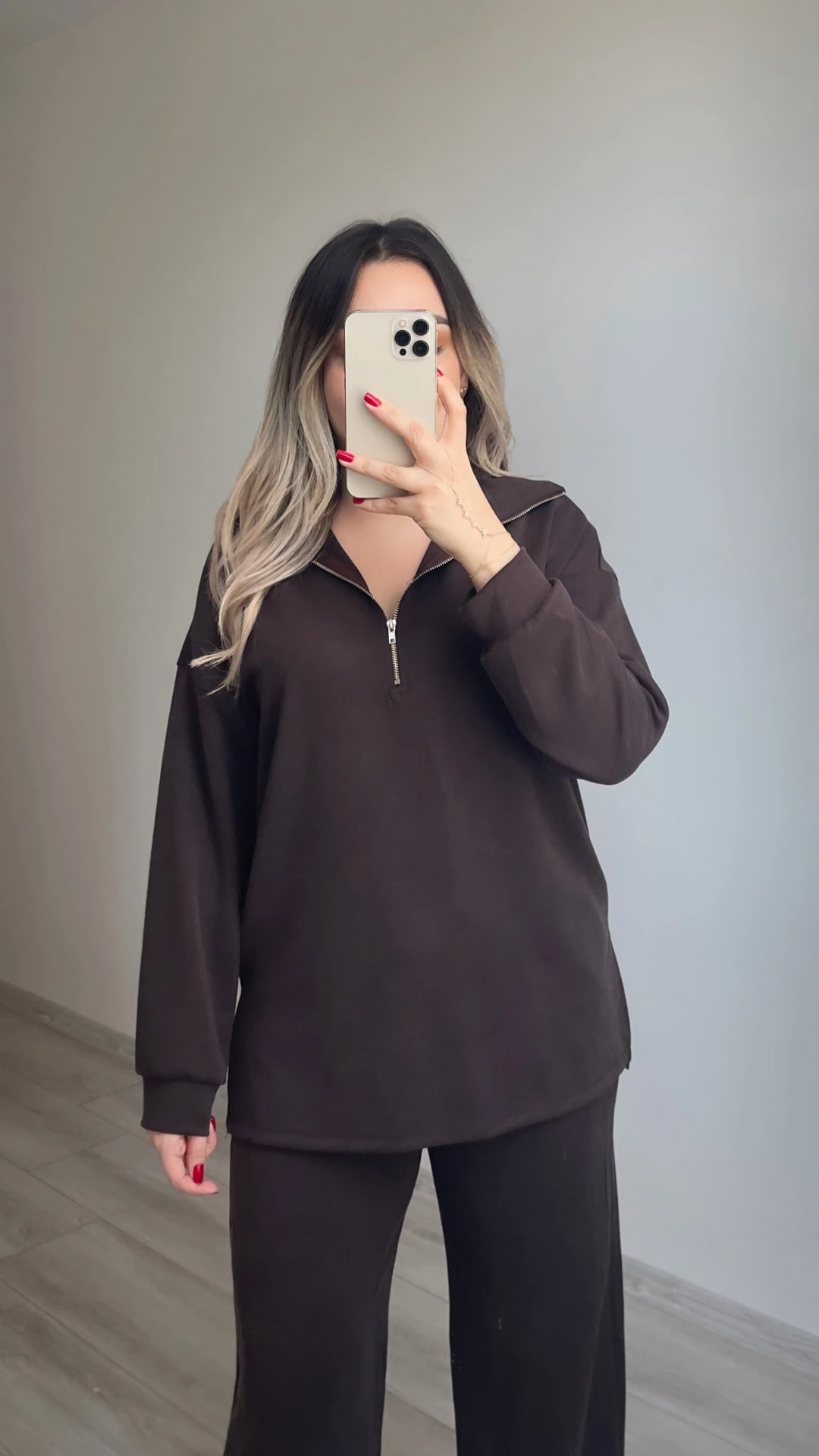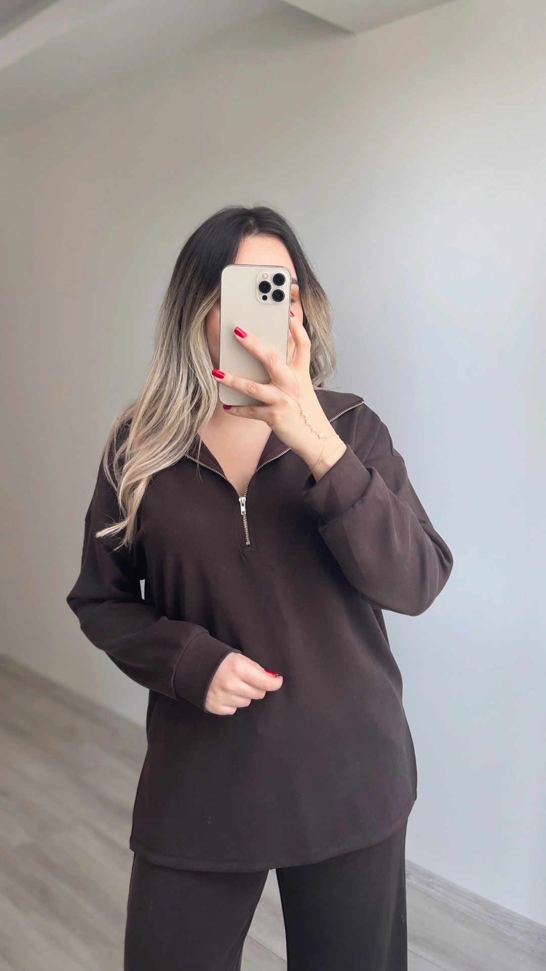 Oysh Yarım Fermuarlı Modal Eşofman Takımı Acı Kahve