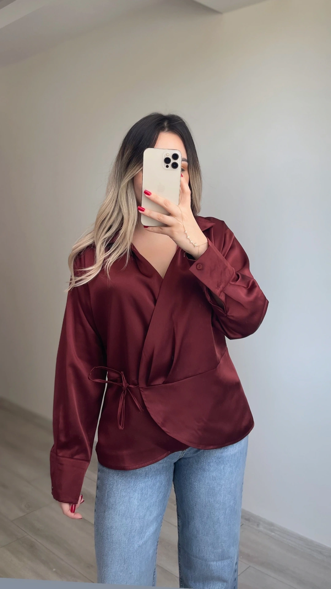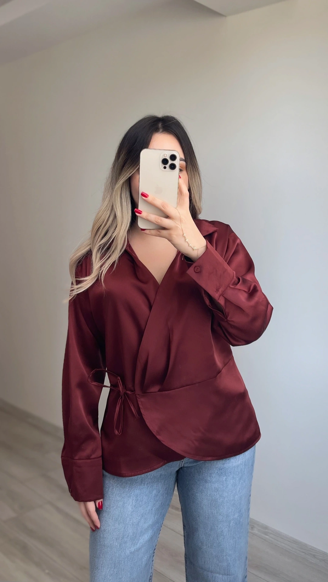 Saten Bordo Bluz