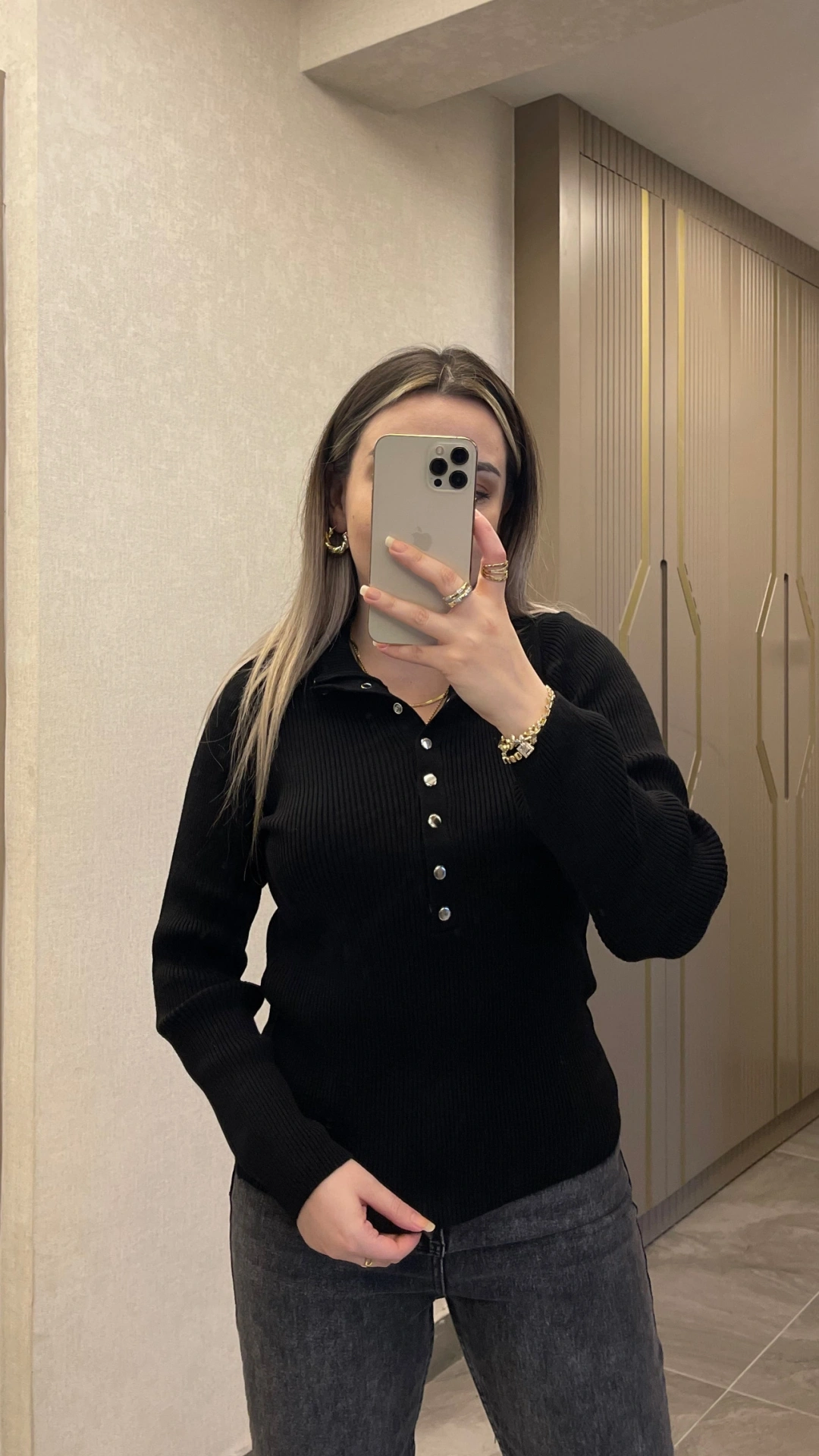 Siyah Çıtçıtlı Premium Triko