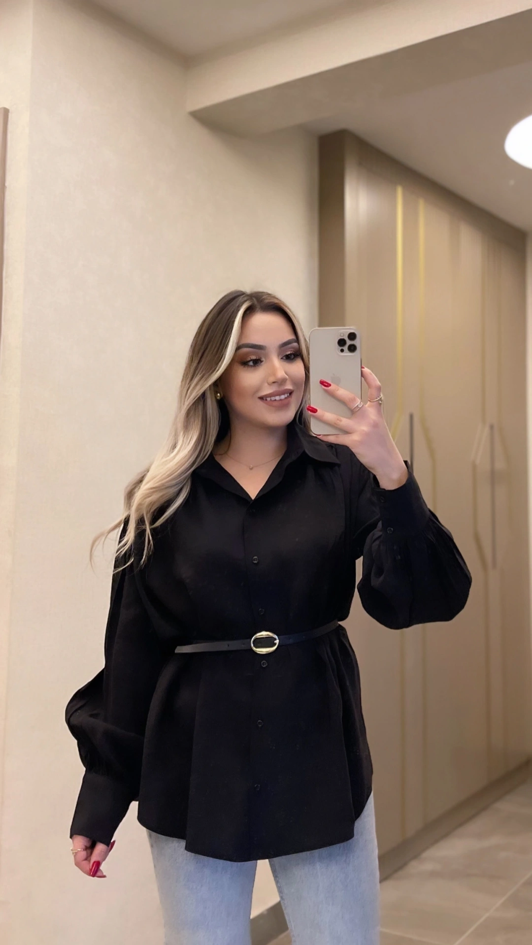 Siyah Kemerli Modal Gömlek