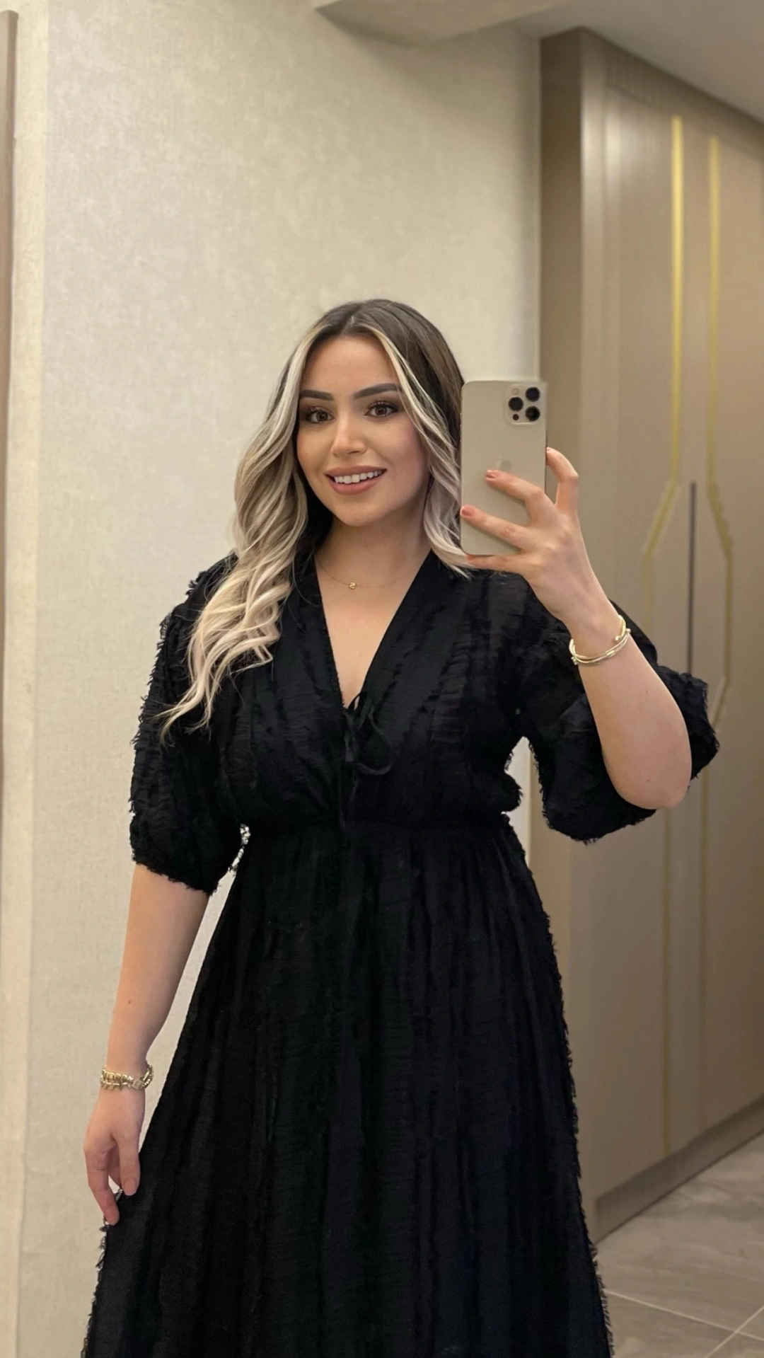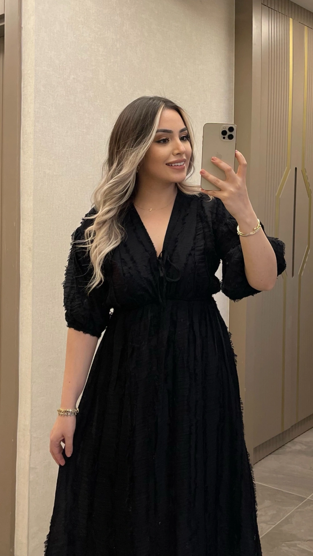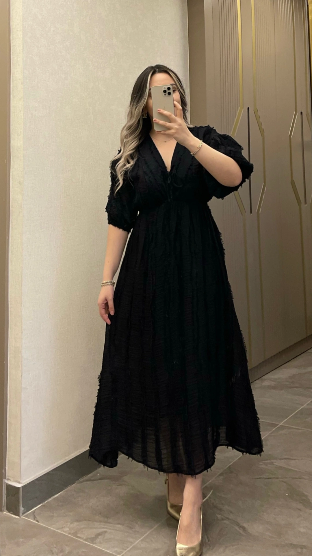 Zamansız siyahın şıklığını hareketli püskül detaylarıyla buluşturan bu elbise, özel gün kombinlerinin vazgeçilmez parçası olmaya aday. Zarif ve iddialı görünümüyle stilinizi ön plana çıkarır.