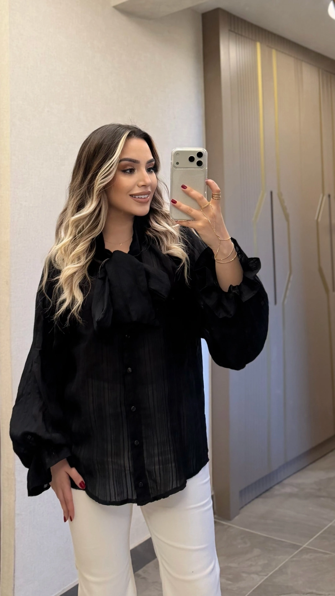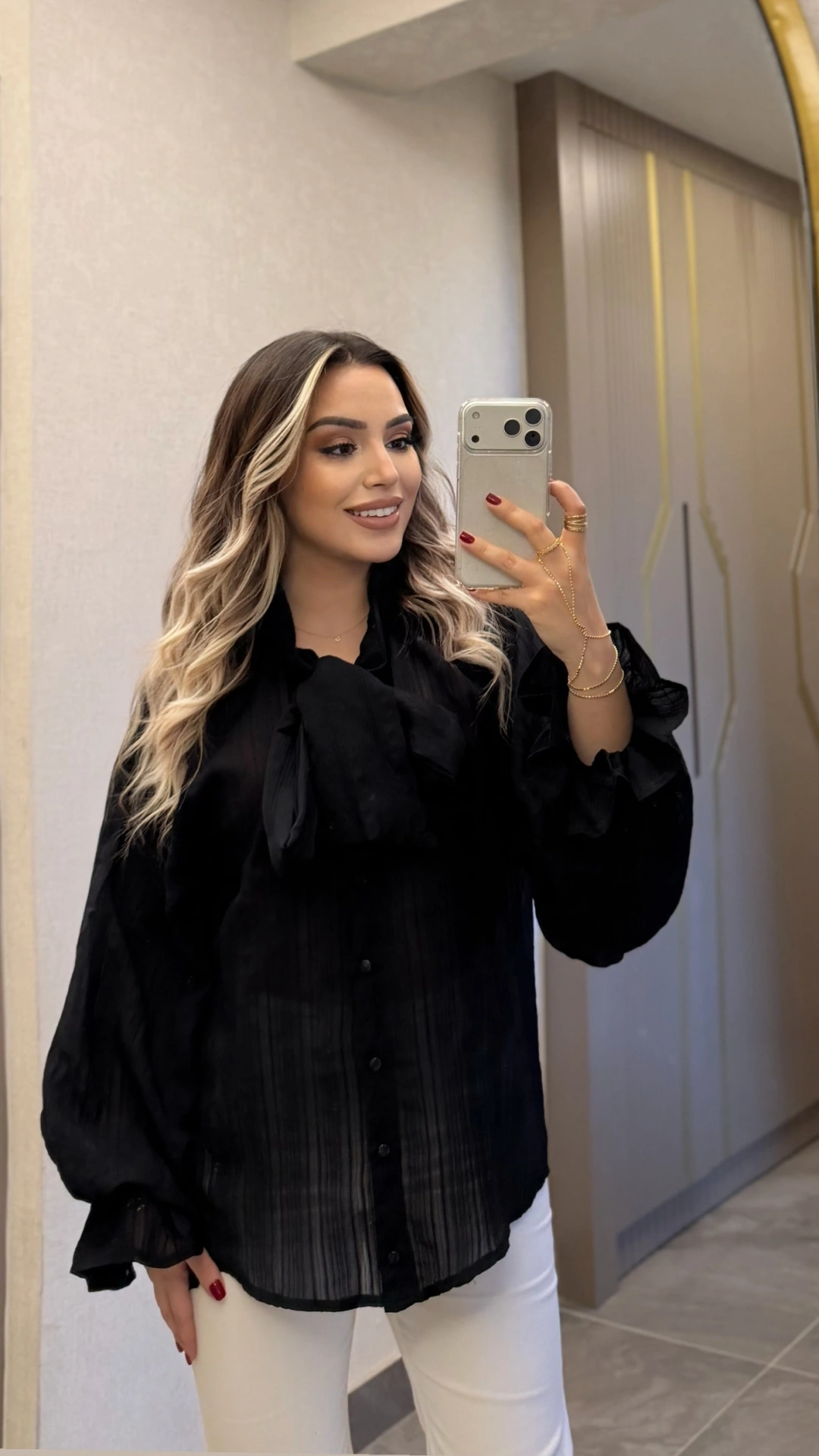 Siyah Fularlı Tensel Gömlek