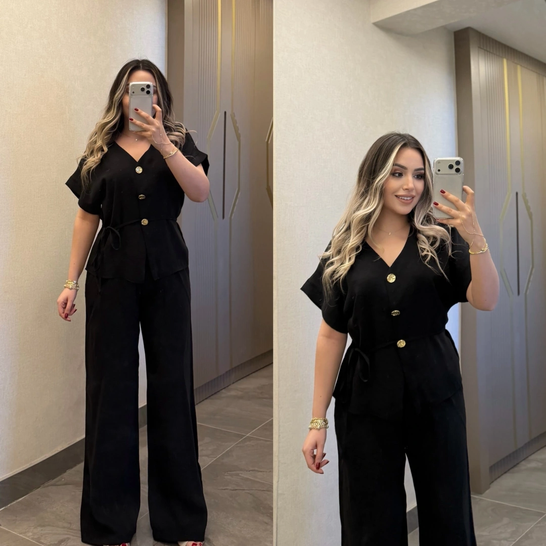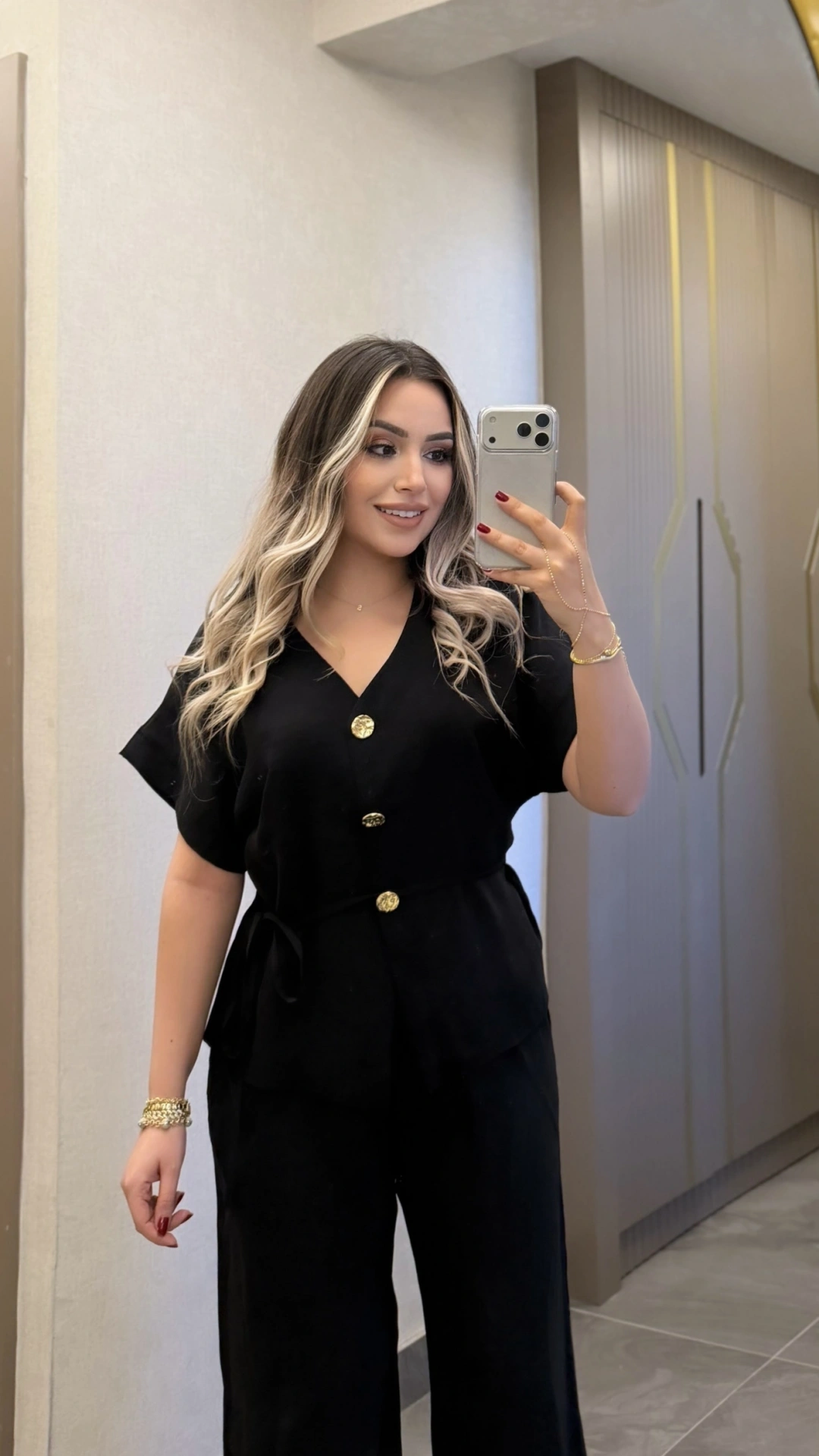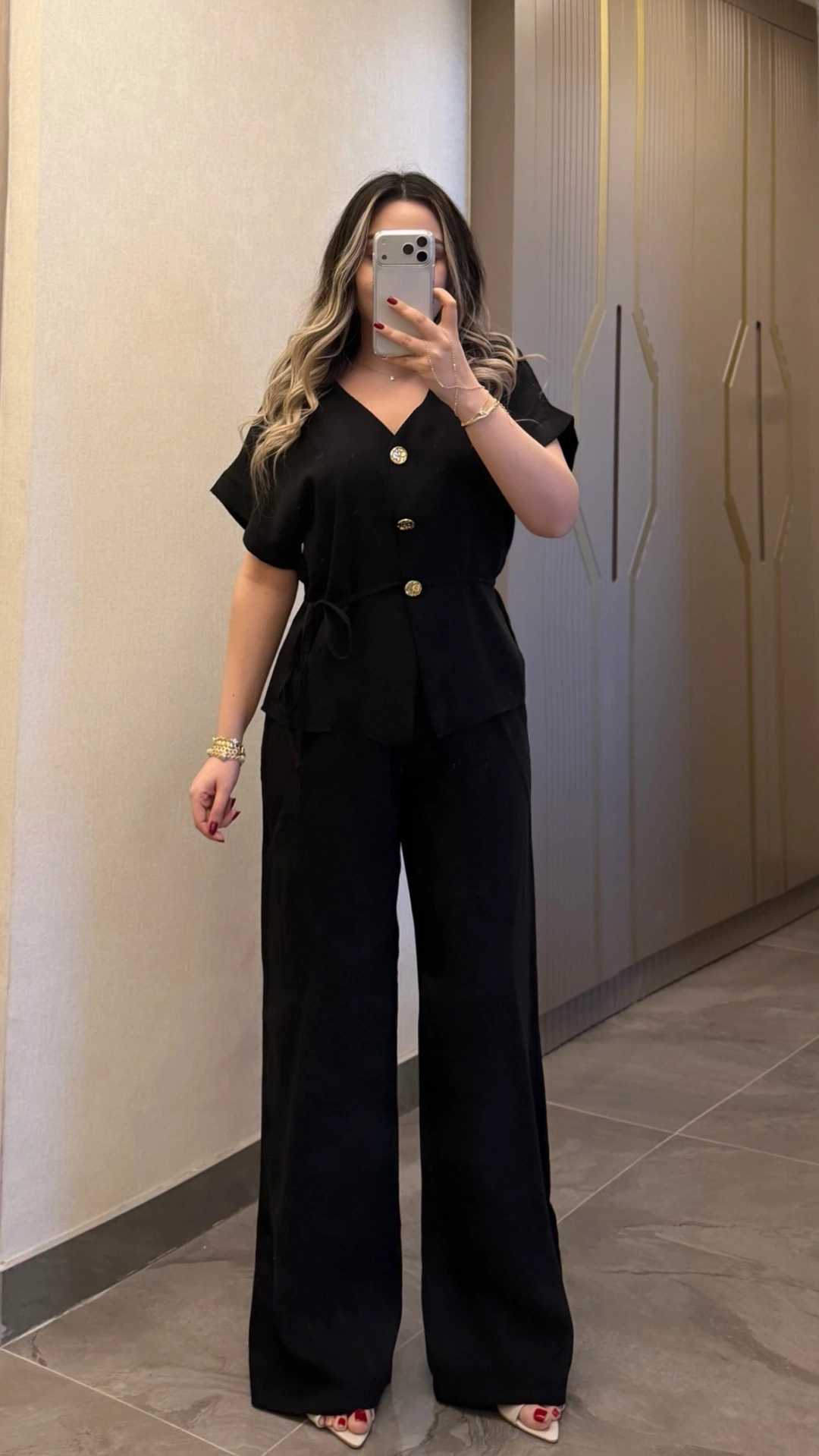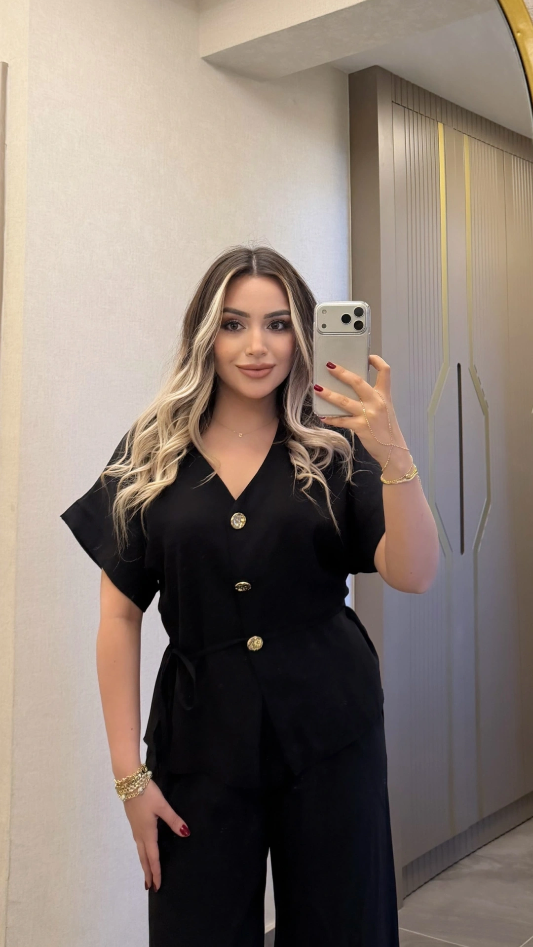 V Yaka Dantel Detaylı Kaşmir Bluz Siyah