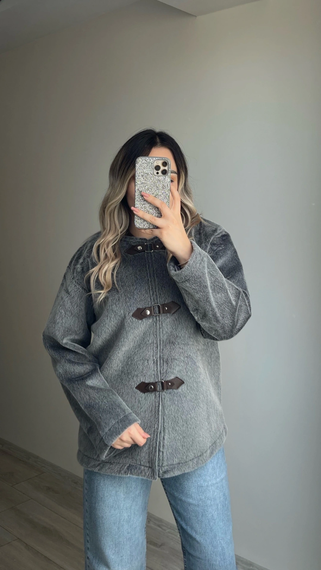 ZR Model Antrasit Peluş Ceket